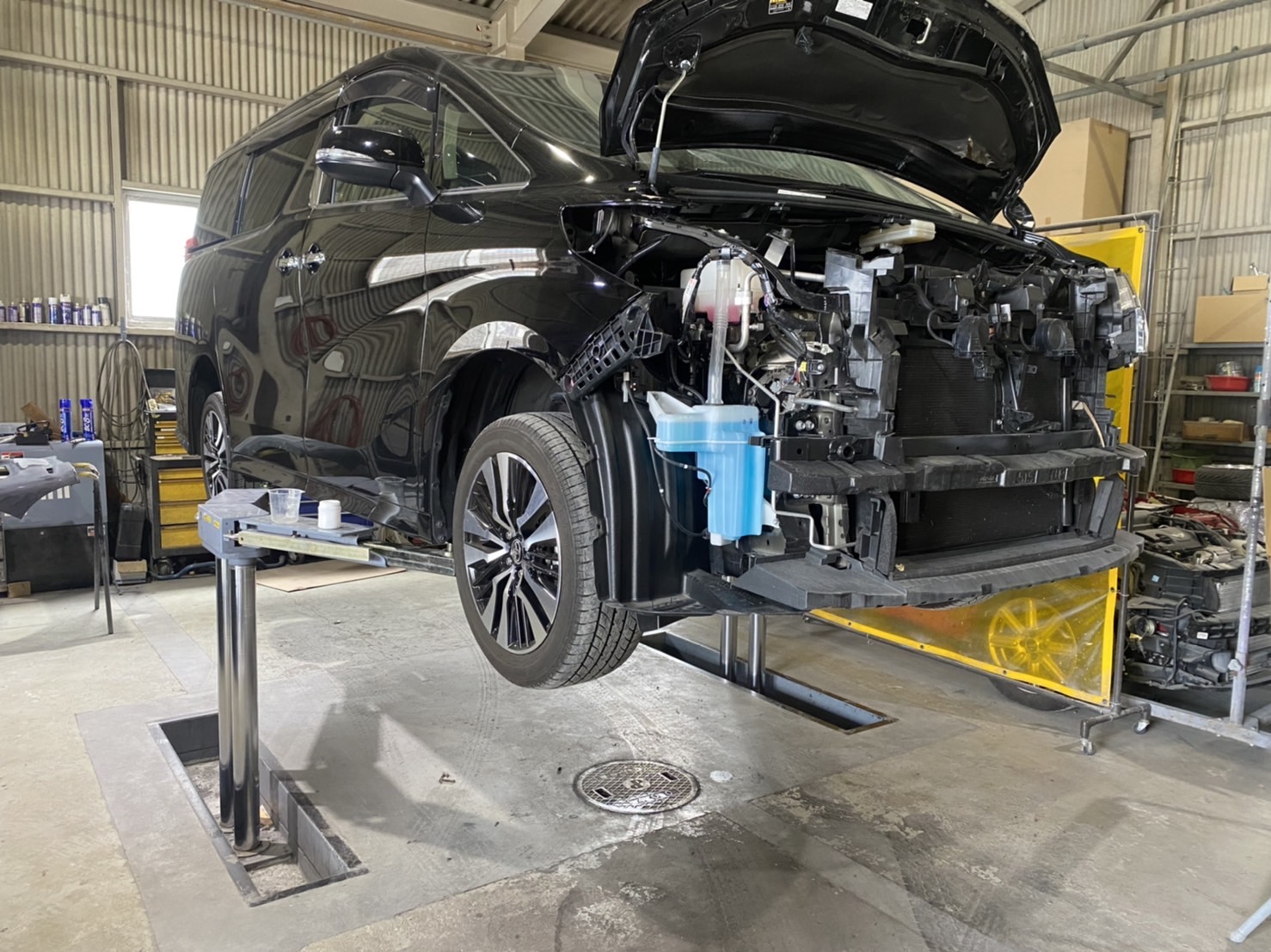 事故によって車体のフレームに損傷が生じた車を修理する為に使用。